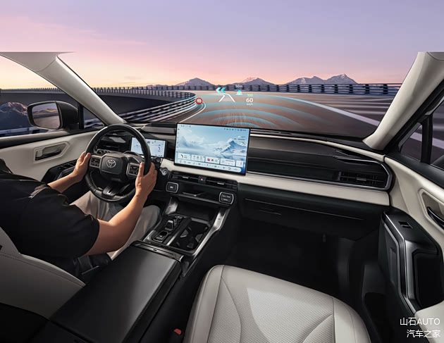 进入车内有一种焕然一新的感觉,丰田也跟上了时代的步伐,为车内增加了科技化元素。首先映入眼帘的就是前排的两块大屏幕,分别是8.8英寸的全液晶仪表和14英寸的悬浮式大屏幕,这两块大屏幕的分辨率都很高,中控屏还支持手机互联和语音交互功能,用起来很方便,而且中控部分取消了实体按键设计,包括空调部分的调节按键都集成在中控屏幕上,为车内提升了科技感。换挡区域分别提供机械式换挡机构和电子换挡机构,其中电子换挡机构看起来更豪华,但是只在高配车型上才有。