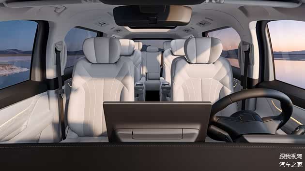 车身侧面采用流畅柔顺的线条设计,5360mm的车长搭配3200mm的超长轴距,赋予车辆饱满的体量感,悬浮式车顶、隐藏式门把手与密辐轮毂的组合,进一步强化了豪华商务气质。车尾独特的“X”形贯穿式尾灯设计,将智驾状态指示灯融入其中,科技感十足,整体造型既符合家庭用户的审美需求,也能胜任商务出行场景。