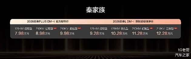 1月8日,比亚迪秦家族迎来重磅加推,2026款秦L DM-i/2026款秦PLUS DM-i 210KM长续航版双车同步上市,售价8.98-12.28万元。其中,2026款秦L DM-i 210KM长续航版限时超级优享价11.28-12.28万元,2026款秦PLUS DM-i 210KM长续航版售价8.98-9.98万元。同时,两款车型均带来了丰厚的上市权益礼。