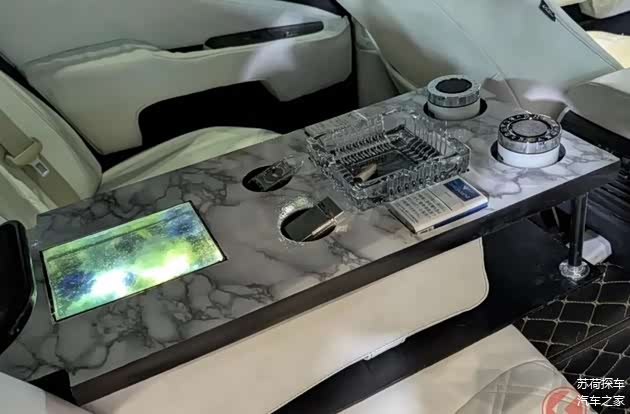 内饰方面方面同样进行了调整,但整体的感觉不尽人意,毕竟第四代雷克萨斯LS 460还是太老了点,能升级的地方不多,前后排座椅都配备了白色的L-TIDE座椅套,但看起来还是颇为老旧的感觉,复古感相当强。不错的升级在后排,看起来像是安放了一块茶几,模拟出了当下移动岛台的感觉,除了杯架这种常规设计,他们还给设计了烟灰缸以及香烟盒放置处,这点可谓是照顾到了烟民的感受了,毕竟如今的新车上不仅没了烟灰盒,连点烟器都给取消了。