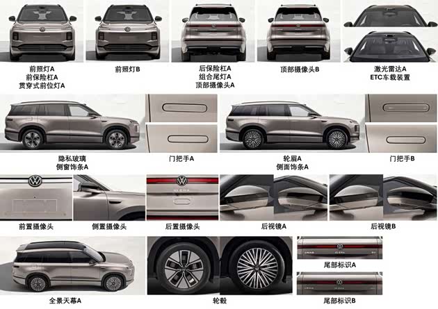 在细节处可以看到,上汽大众ID.ERA 9X将在前挡风玻璃顶部区域搭载激光雷达,这意味着新车会具备高阶智能辅助驾驶能力。此外,ID.ERA 9X还采用了隐藏式门把手设计以提升工业设计的美感。540度全景影像+透明底盘、大尺寸全景天幕以及多款大尺寸轮圈,新车也全都配备。