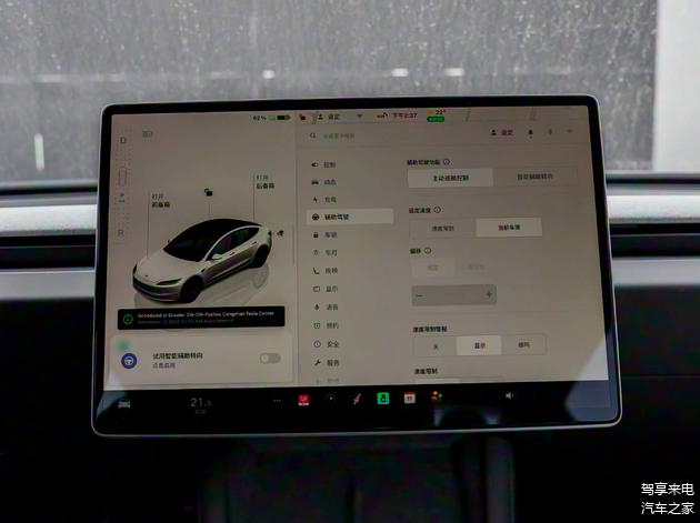 Model 3走的是极简路线,主打“极简大屏+精简布局”。车内仅配备一块15.4英寸悬浮中控屏,没有配备传统仪表和HUD,核心行车信息集成在中控屏左侧,后排有一块8英寸娱乐屏,尺寸有点小,好在屏幕分辨率较高且不易留指纹。算力由 AMD Ryzen 芯片支撑,流畅度不错,语音助手仅支持基础指令,无法连续对话,大部分操作都依赖中控屏,换挡、调节灯光等都需要在屏幕操作或依赖方向盘按键,新手需要一定适应期。