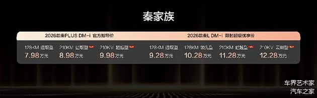 2026款秦L DM-i与2026款秦PLUS DM-i 210KM长续航版,凭借超长续航打破出行边界,以豪华科技配置重塑家轿体验,精准满足不同家庭需求。作为插混轿车的引领者,秦家族以硬核产品力和越级价值,必将成为2026年行业风向标,引领家轿市场迈向高品质发展新阶段。