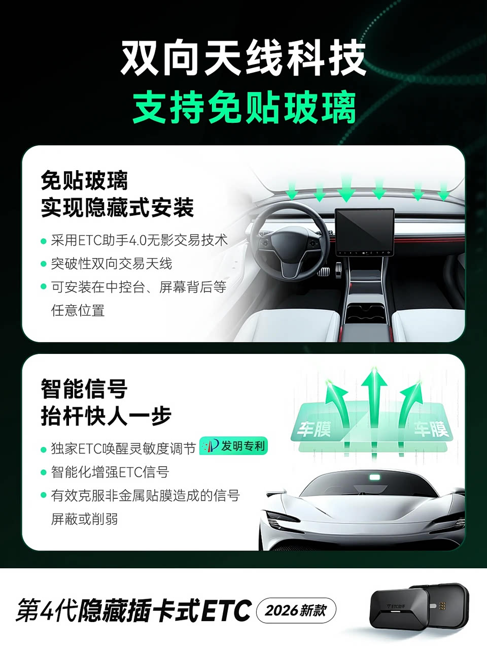 1️⃣ 双天线强信号:无论贴窗还是隐藏安装,识别快又准,跟车、提速都不怕