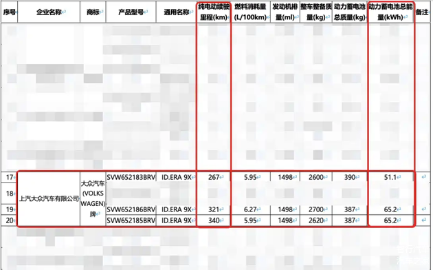 近日,上汽大众 ID.ERA 9X官图正式发布了,新车定位6座增程SUV,有单、双电机可选。从工信部申报的信息来看,ID.ERA 9X有51.1kWh和65.2kWh两个电池组,纯电续航最高可达340km。