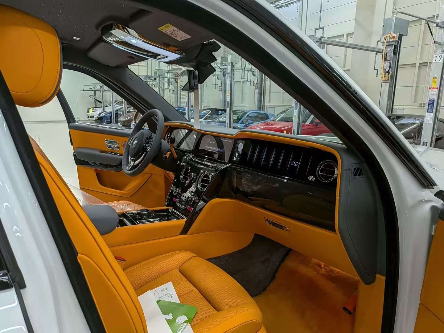 26款 库里南BB 颜色;白/橘 配置:4座 流星顶 腰线 卡钳 23轮 隐私玻璃 发光小人 发光面板 后娱 定制音响 月末到港