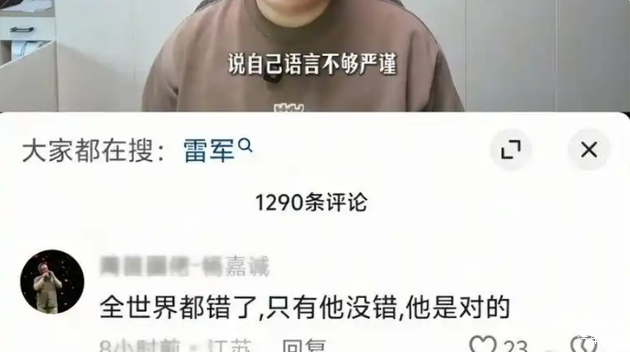 不过,也有网友对此并不接受。例如有网友表示:“全世界都错了,只有他没错,他是对的。”言下之意显示出,雷军的表态并未起到“理解万岁”的效果。