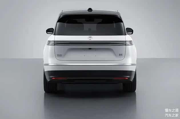 车身尾部,尾部的整体设计与蔚来ES8接近,细节上,顶部配备高扰流板,尾窗的倾斜度比较大,宽厚的贯穿式尾灯,左尾灯下方为蔚来标识,右尾灯下方为ES9标识,宽厚的后包围造型。