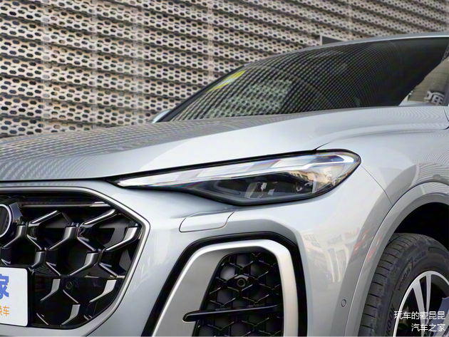 再看奥迪Q5L,就是标准的德系帅哥了。家族式六边形大嘴进气格栅,矩阵式LED大灯,车身线条饱满有力,整体给人一种很稳重的感觉。不过说实话,这套设计语言我们已经很熟悉了,优点是耐看,缺点就是少了点新鲜感。