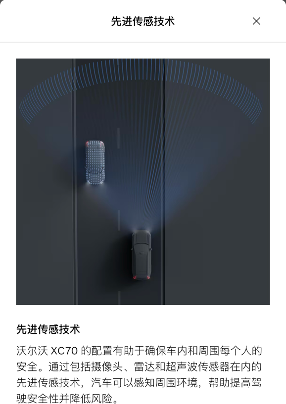 安全一直是沃尔沃的强项,XC70全系标配City Safety 3.0系统,包括前后低速AEB、全速域自适应巡航等。高配车型还支持NPA领航辅助,能自动变道、上下匝道。说实话,这种“安全标配”的理念真的很圈粉。