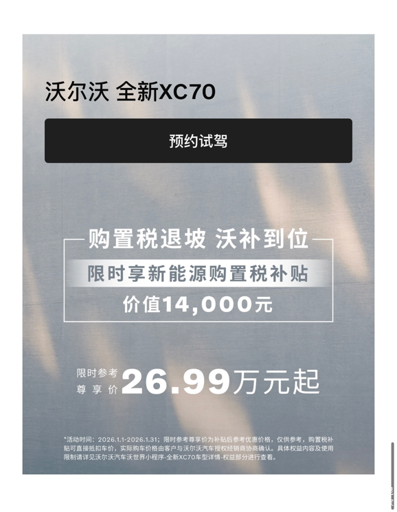 如果你现在开的就是沃尔沃,增购或置换XC70可以享受15000元补贴。如果是其他品牌车型置换,也能拿到5000元补贴。这个政策对老车主特别友好,让升级换车变得更划算。