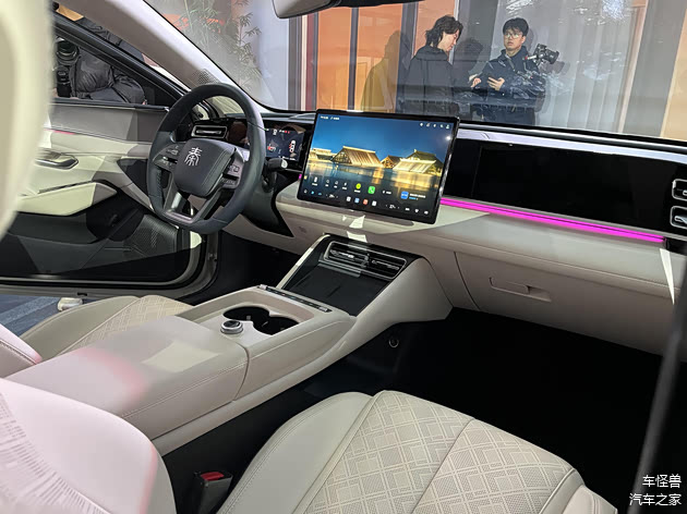 内饰配置全面升级,科技感与实用性双提升。12.8 英寸自适应旋转悬浮 Pad 搭载 DiLink 5.0 系统,支持 5G 网络与分屏多任务,操作流畅。新增全景摄像头、冷暖冰箱及抬头显示功能,8.8 英寸全液晶仪表盘信息清晰。DiLink100 车机系统带萌宠主题和无麦 K 歌,导航与手机无缝流转,娱乐通勤两不误。