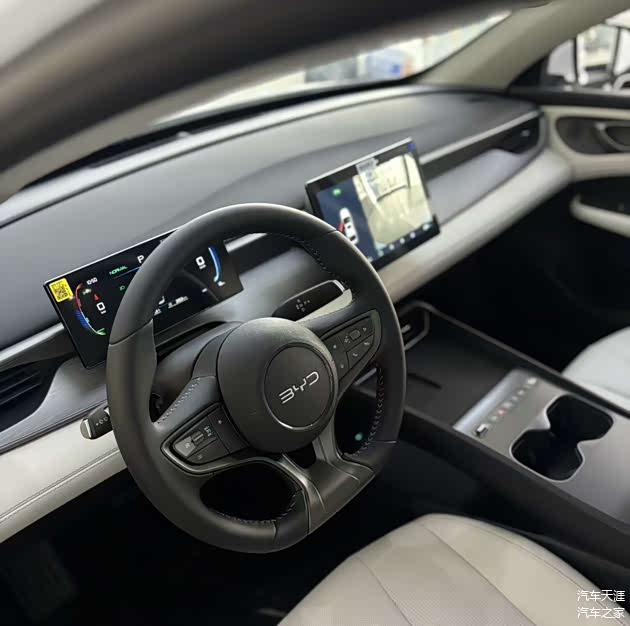 新款的海豹05全系都换成了怀挡档把,操作起来更顺手,把原本档把的位置增加了横向实体按键、50W无线充电和杯架,放手机、放水杯都很方便,日常的一些小物件这下也有地方放了。