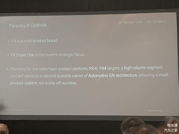 对于FX 4的产品信息,官方在发布会期间只是提了一下:该车瞄准的是高需求的细分市场,并将作为Automotive EAI架构的第二款可扩展载体,确保构建一个多产品系统。
