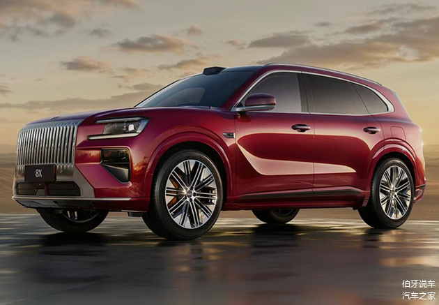 极氪8X在设计上基本上延续了极氪9X的设计风格,直瀑式前中网很有气势。