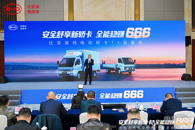 1月9日,“安全舒享新轿卡 全能稳赚666”——比亚迪纯电动轿卡T4重庆品鉴会再传好消息:比亚迪商用车推出比亚迪纯电轿卡T4西南地区专属购车福利和纯电轻卡灵活租售方案、混动轻卡“升舱计划”,为各位卡友的创富之路精准赋能。
