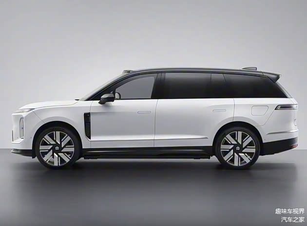车身侧面线条平直硬朗,隐藏式门把手优化风阻,提供双色车身、21至23英寸多规格轮毂可选,独特的“大饼轮毂”造型强化豪华质感,轮眉处黑化饰条与车身装饰线提升层次感。车尾沿用贯穿式尾灯,搭配后包围贯穿镀铬饰条拉伸横向视觉宽度,车顶扰流板优化高速气流稳定性,整体造型兼顾大气与运动,整备质量控制在2845-2915kg,轻量化表现优异。尺寸方面优势显著,新车车身尺寸为5365/2029/1870mm,轴距达到3250mm,较蔚来ES8(5280/2010/1800mm,轴距3130mm)全面提升。
