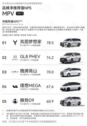 数据显示,岚图梦想家2025年下半年销量为43191台,再次蝉联高端MPV第一,2025全年达到80248台,同比增长46%。另据杰兰路发布的《2025年度下半年新能源汽车品牌健康度研究(NPS篇)》,岚图梦想家在2025年下半年以78.5分的净推荐值(NPS)位居新能源MPV榜首。