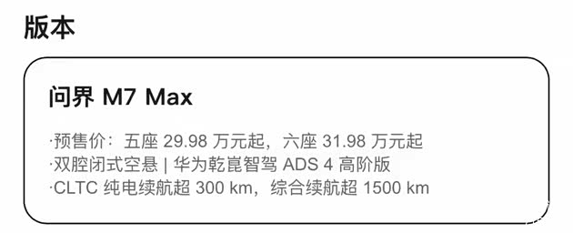 结语:问界M7增程长续航版的推出,让消费者多了一种版本选择,提供5座和6座布局,能够满足不同用户需求,配备华为鸿蒙座舱和乾崑高阶智驾,CLTC纯电续航里程超300公里,综合续航超1500公里,你会考虑它吗。