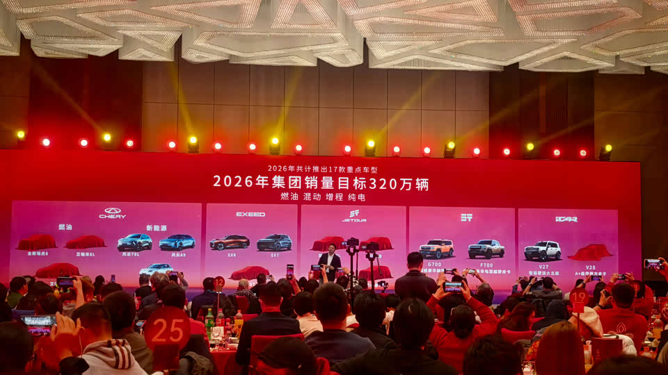 奇瑞品牌2025全年销量1,700,940辆。2026年新车规划,燃油车:全新瑞虎8、艾瑞泽8L、全新轿车;新能源:风云T9L、风云A9,还有经典的国民神车QQ3。