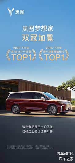 当销量与口碑形成强大的良性循环,一款产品就具备了持续进化的生命力,足以问鼎行业的新高度。岚图梦想家的双冠王,并非一个简单的销量夺冠叙事,而是为这条由中国品牌重新定义的高端赛道上树立了一座灯塔,照亮了以坚实技术为基、以真实用户为本的向上路径,擎旗迈向更广阔的未来。#高端MPV销量冠军#岚图梦想家#买高端MPV选岚图梦想家就对了