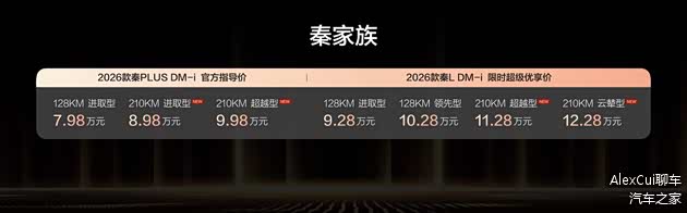 最近打算入手插混轿车的朋友,大概率会发现一个明显变化:比亚迪集中为 秦PLUSDM-i、秦LDM-i、海豹05DM-i、海豹06DM-i四款热销车型加推210kmCLTC纯电续航版本,直接把10万级插混的续航门槛拉到200km以上。这四款新增车型精准覆盖不同细分需求,构成了完整的长续航产品矩阵,具体来看各有侧重: