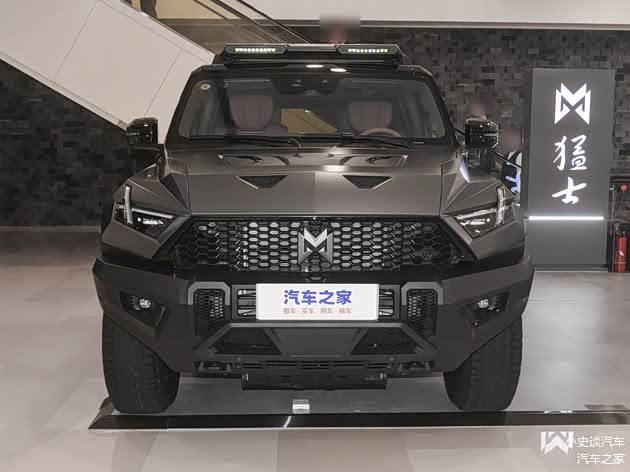 我们首先来看新车的外观设计方面,猛士917的车头设计堪称硬派越野的典范。前脸采用封闭式进气格栅,搭配LED大灯组,营造出强烈的视觉冲击力。大灯组内部结构立体感十足,LED日间行车灯、前雾灯、大灯高度调节、自动开闭以及自适应远近光等功能一应俱全,不仅提升了夜间行车的安全性,更增添了科技感。下包围部分的设计粗犷有力,两侧集成雾灯,底部采用多边形进气口设计,整体风格霸气十足,仿佛一只强悍的东方醒狮,彰显出设计师的雄浑理念。