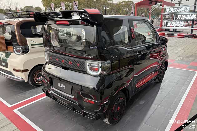 竞速版车型采用黑色涂装,并搭配了红色的专属拉花,下包围处采用蜂窝状设计以及铲状的前唇,在尾部还加入了个性化的扰流板,黑色的轮圈造型同样带有红色元素作为点缀,整体风格看起来十分酷炫拉风。