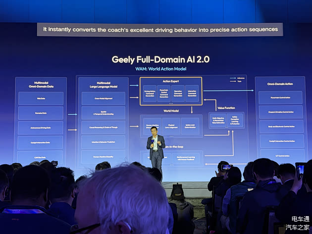 发布会现场,吉利主要公布了两项成果:一是基于WAM模型强大的内核,吉利全域AI技术体系全面升级,进阶到2.0时代;二是公布了千里浩瀚G-ASD辅助驾驶系统的全新英文品牌名——G-ASD,以及在辅助驾驶领域的最新规划。