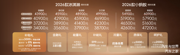 1月10日晚,奇瑞汽车在安徽芜湖凤鸣研创中心成功举行“潮有料开麦夜”暨2026款全新冰淇淋上市发布会。在脱口秀演员Echo与她的朋友们带来的轻松笑谈中,26款全新奇瑞冰淇淋正式上市,宣告“两门高定出行潮品”正式进入市场。共推出四个版本车型,女王版售价38700元起、竞速版售价37900元起、英伦版售价35600元起、甜趣版售价34000元起。同时,全新小蚂蚁也同步推出271km喜爱版与271km真爱版两款车型,真爱版售价47200元起、喜爱版售价42600元起,进一步丰富奇瑞新能源在微型纯电市场的产品矩阵。