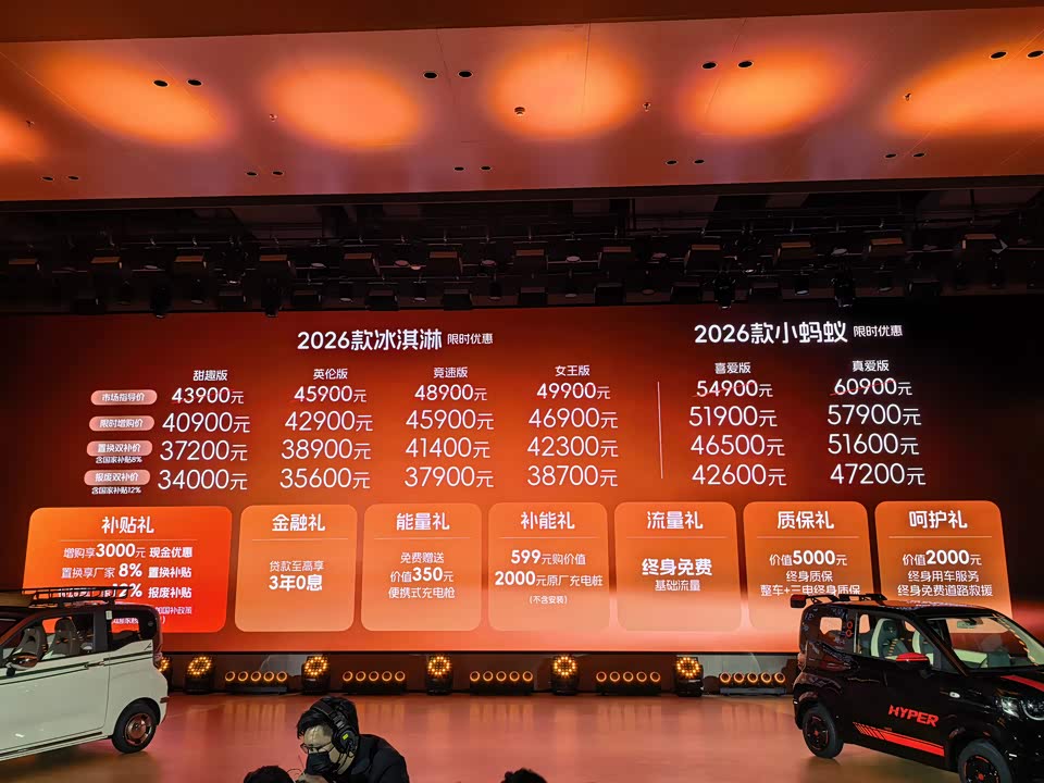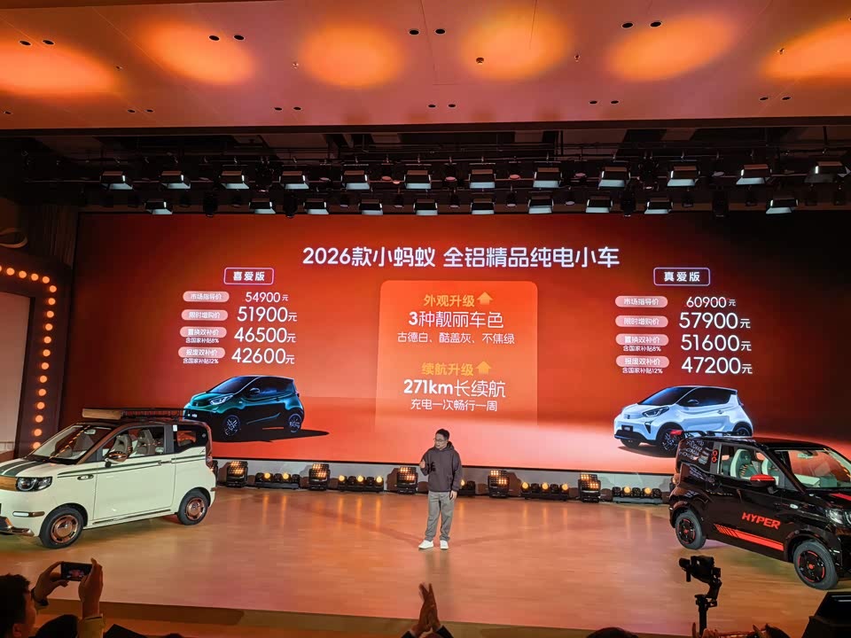 车盟快讯:1月10日,3万级纯电代步车又添猛将!2026款奇瑞QQ冰淇淋正式上市,市场指导价在4.39万-4.99万元,叠加报废双补后价格只要3.4万-3.87万,同时2026款的小蚂蚁市场指导价是5.49万-6.09万,叠加报废双补后价格只要4.26万-4.72万元,还有六项限时权益,直接在微型车市场投下震撼弹!