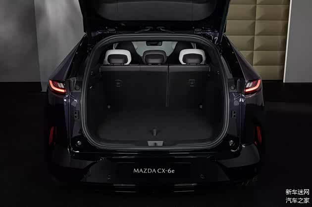 车身尺寸上,CX-6e 比燃油版 CX-60 更长、更宽,但后备箱储物空间却远不及这款燃油 SUV,更无法与其他电动竞品相抗衡。CX-6e 的后备箱容积仅为 468 升,而 CX-60 的后备箱容积可达 570 升,特斯拉 Model Y 的后备箱容积更是超过 850 升。