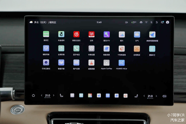车机部分,捷途山海L7 PLUS搭载了TOUR OS 3.0车机系统+高通骁龙8155车机芯片,实际使用中,15.6英寸向日葵旋转中控屏支持左右10°偏转,配合四音区语音控制,屏幕会向发声者方向偏转,交互逻辑较为清晰。屏幕画面质感清晰,即使在强光下也能看清字迹,操作流畅度不错,没有明显卡顿。