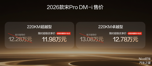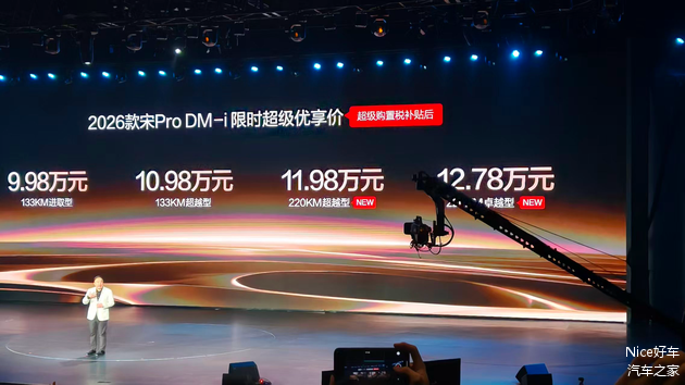 如果你不想加预算,那2026款宋ProDM-i的135km纯电续航版本,指导价10.28万起,优享价9.98万元起,相当于在老款入门价的前提下,给到比老款115km长续航还要长的135km纯电续航。