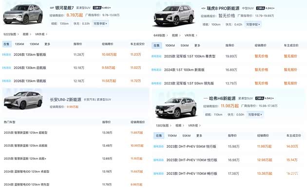 要说接近的竞品,零跑C10增程版是为数不多的一台,车长同为4.7米多,纯电续航200km+,指导价12.28-13.28万,目前终端参考价11.88万起。