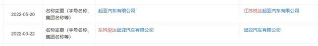 天眼查显示,2022年3月22日,悦达起亚发生工商变更,公司名称由东风悦达起亚汽车有限公司变更为起亚汽车有限公司,同年5月20日又变更为江苏悦达起亚汽车有限公司。