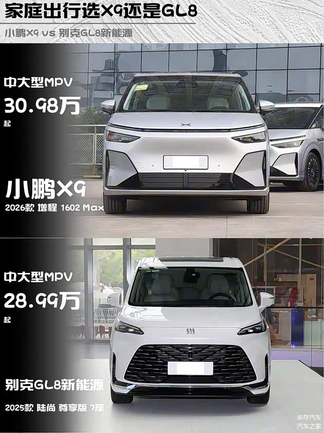 最近在选家用MPV的兄弟看过来!今天深度对比两款30万级热门选手——小鹏X9 2026款增程1602 Max和 别克GL8新能源2025款陆尚尊享版7座,实测干货直接上菜!🍗