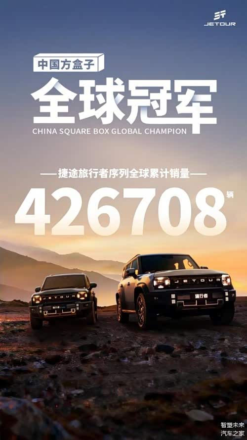 作为“旅行+”战略的核心落地载体,捷途方盒子家族2025年全年销量突破30万辆,成功成为首个实现“国内市场+海外市场”双线领跑的中国方盒子品牌。其中,捷途旅行者系列持续发挥增长引擎作用,自上市以来全球累计销量突破426708辆,仅用28个月便稳固品类领先优势,持续领跑中国方盒子市场,成为推动该品类大众化普及的关键力量。