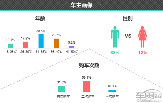 一、车主画像:中青年男性用户居多 二次购车用户占比较高