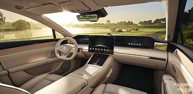 内饰方面,享界S9的车内设计在豪华与科技之间,取得了平衡,配备了16.1英寸液晶触控屏与12.3英寸液晶仪表,并拥有12.3英寸的副驾娱乐屏,副驾驶乘客能够在行驶过程中通过该屏幕浏览电影、视频。