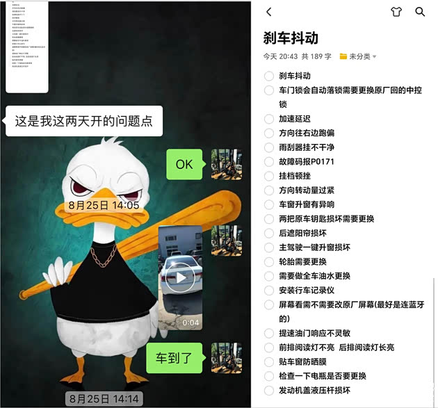 经过几天物流,车子到达咱厂里了,车主也列举了一些整备需求。