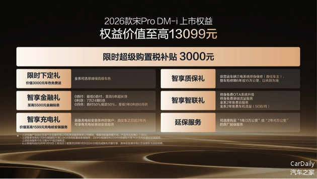 宋Pro已赢得超过百万家庭的信赖。此次2026款宋Pro DM-i以限时9.98-12.78万元的诚意价格,为消费者提供了更具价值的选择。它不仅是对产品线的有力补充,更是基于用户真实反馈的诚意升级。以更长的纯电续航、更智能便捷的科技配置、更体贴入微的舒适享受和更周全可靠的安全防护,生动诠释了一款优秀家用SUV应有的价值,陪伴更多家庭悦享每一段美好旅程。