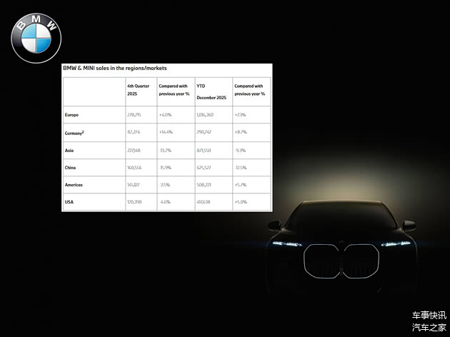 先上核心数据,看清楚这场“冷热不均”的格局:1月9日宝马集团官方公告显示,2025年全球总交付量246.37万辆,同比微增0.5%,其中欧洲市场增长7.3%,美洲市场增长5.7%,海外市场全面飘红。但作为全球最大单一市场的中国,表现却堪称“断崖式下滑”:全年销量62.55万辆,同比暴跌12.5%,第四季度降幅更是扩大到15.9%,连续两年销量缩水,从2023年的82万辆跌到如今的62.55万辆,两年蒸发近20万辆份额。
