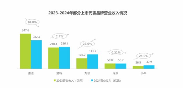 2024年是雅迪的调整、阵痛期,2018版新国标车型换购期还没有来临,市场需求本就疲软,再加上2024版新国标过渡期去库存的难度,企业做生意举步维艰。公司年报显示,受这双重因素影响,雅迪全年营收下滑18.77%,净利润暴跌51.81%,腰斩至12.7亿元。整个行业销售量也跌落5000万台,许多企业都处于开发经销商、去库存、降价格的困难中,雅迪的净利润下滑,是整个行业调整期的一个真实写照。