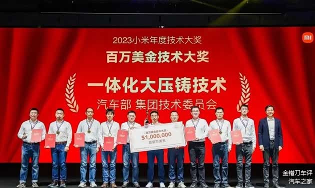 特别是小米汽车,更是让大压铸为人们所熟知。2023年的 小米SU7技术发布会上,雷军花了大篇幅自豪地介绍全栈自研的9100吨一体化大压铸设备集群系统。2023年小米百万美金技术大奖,也颁给了一体化大压铸技术。