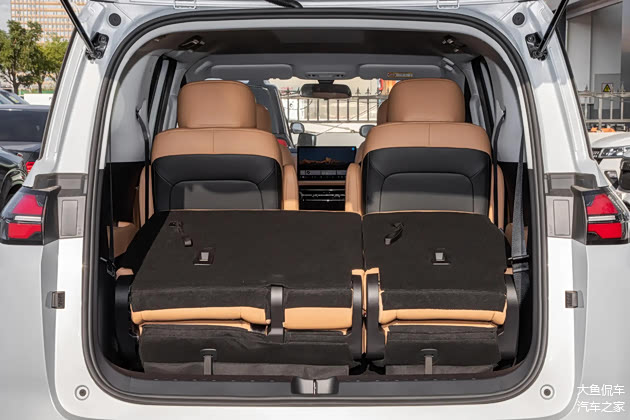 后备箱空间也很灵活,常规状态下能放三个20寸行李箱,满足家庭出游的基本需求;把第三排座椅放倒后,能拓展出1202L的超大空间,露营装备、婴儿车甚至搬家的大件物品都能装下,不过有个小细节要提一下,第三排座椅放倒后不是纯平的,要是拉一些大件易碎物品,可能需要自己垫一块平板。