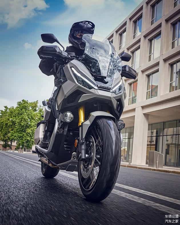 X-ADV750的最大特点是其冒险元素:高离地间隙、长行程悬挂、前17和后15英寸交叉辐条轮圈,以及宽大的风挡。