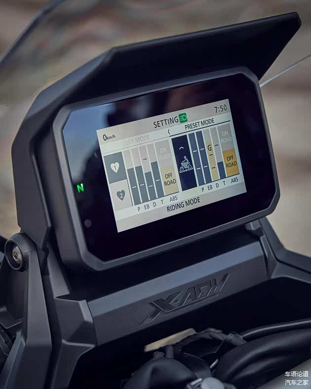 但X-ADV750真正的舞台在于更广阔的未知天地。其150mm的长行程悬挂、高离地间隙和钢丝辐条轮圈,赋予了它超越传统踏板的通过能力。车辆提供了五种骑行模式(标准、运动、雨天、砂石、自定义),能够适应从公路到轻度越野的多种路况。