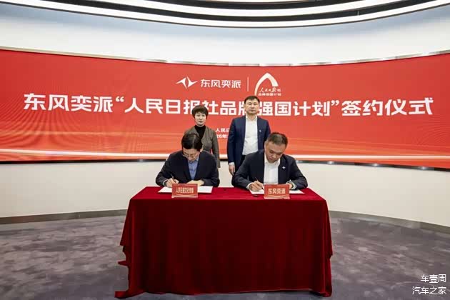2026年1月11日,东风奕派“人民日报社品牌强国计划”签约仪式在人民日报社举行。人民日报文化传媒有限公司董事长寇非和东风汽车营销管理部总经理,东风奕派汽车科技公司党委书记、副总经理张俊出席仪式并见证签约。人民日报文化传媒有限公司副总经理郝立鹏与东风奕派营销事业部总经理余岳峰代表双方签署了协议。这一合作,意味着东风奕派正式融入“人民日报社品牌强国计划”大局,肩负起向世界展现中国品牌实力的时代使命。