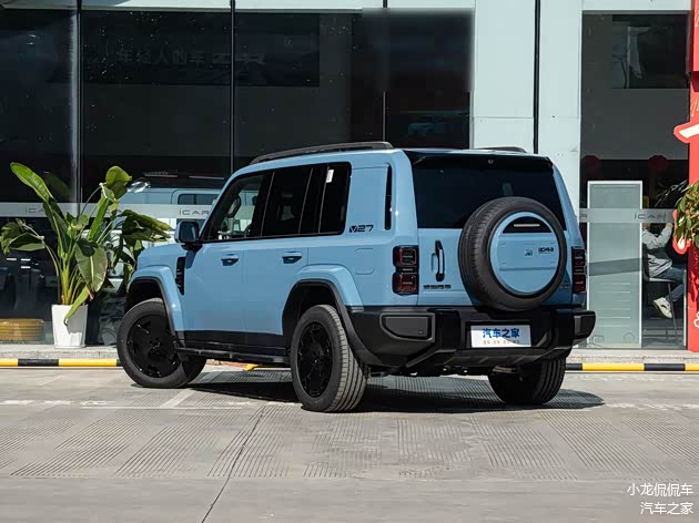 外观设计方面,iCAR V27整体的造型采用了家族式的设计语言,外观时尚硬朗,比较能够符合当下大众主流审美。车头部分,新车采用了方正的造型设计,配合外凸的保险杠和方灯设计,让整个车头看起来硬朗十足。车身侧面,iCAR V27外凸的轮眉看起来很有野性,而粗壮的D柱设计则给车侧增添了比较高的辨识度。车尾部分,虽然iCAR V27是一款城市SUV,但该车依然采用了侧开尾门和后挂备胎这两个纯正越野车通常喜欢采用的设计,所以新车的整个车尾看起来还是很有“越野范儿”的。